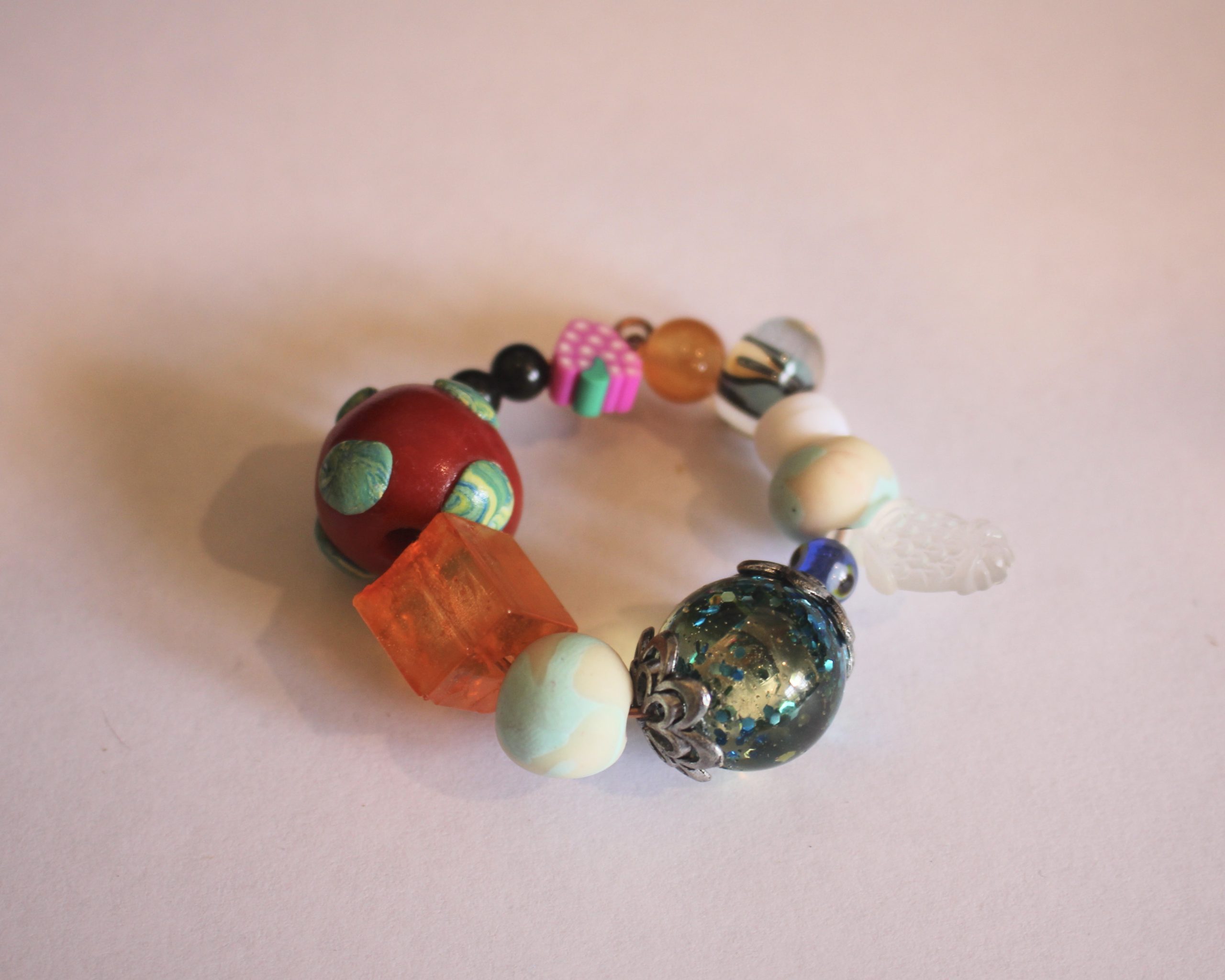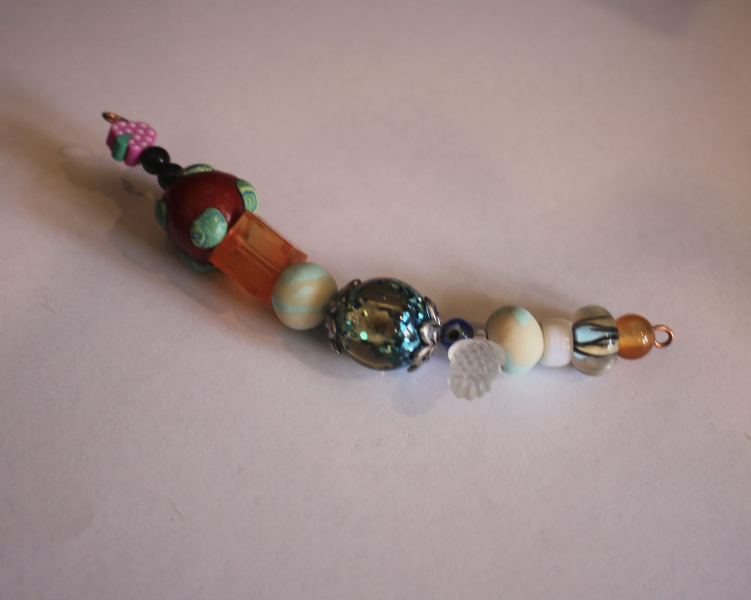 4: A charm. I used this pink resin glitter charm with a jump ring attached to the top.