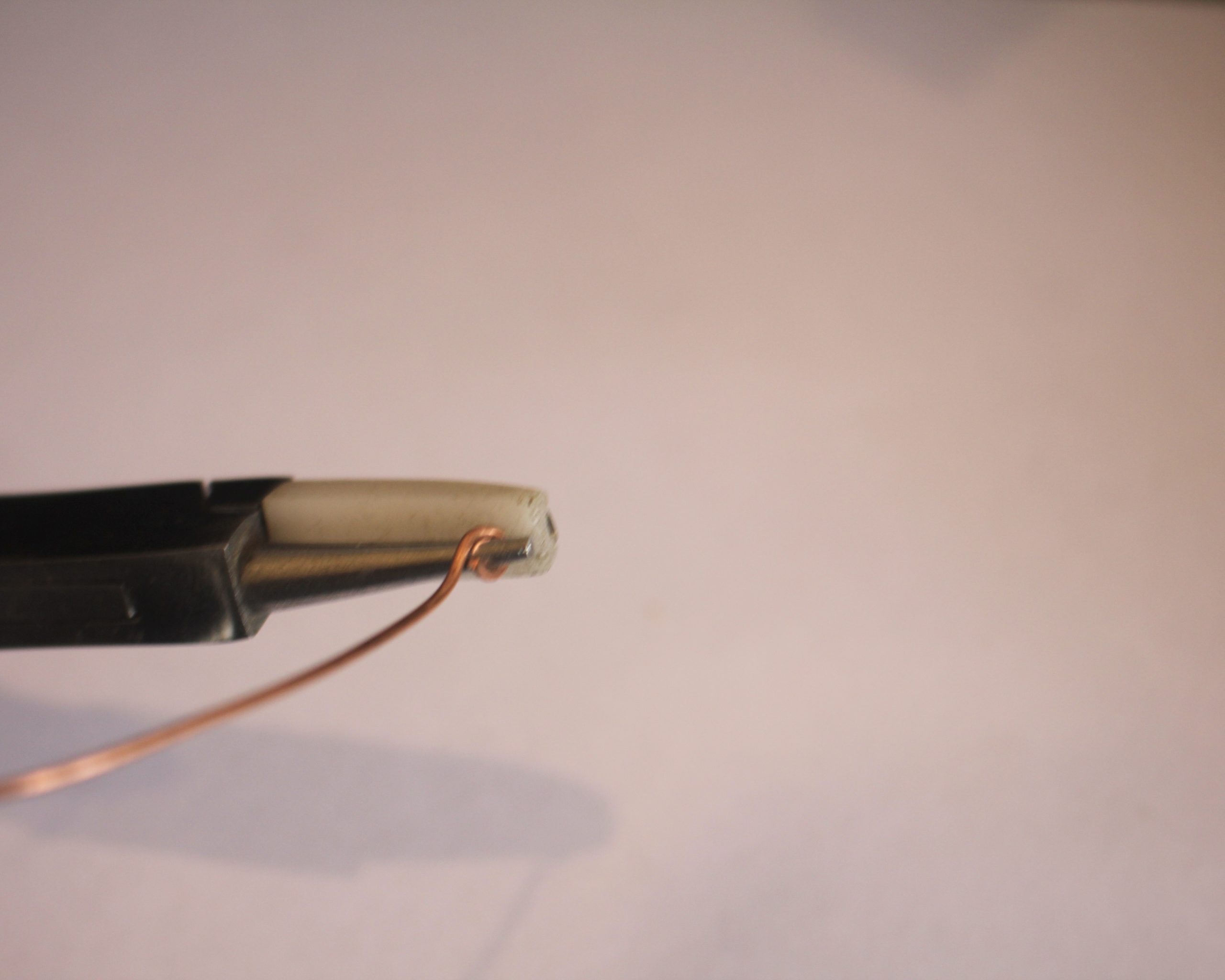 2: Take the wire and hold form the end into a right angle using the flat nose pliers.