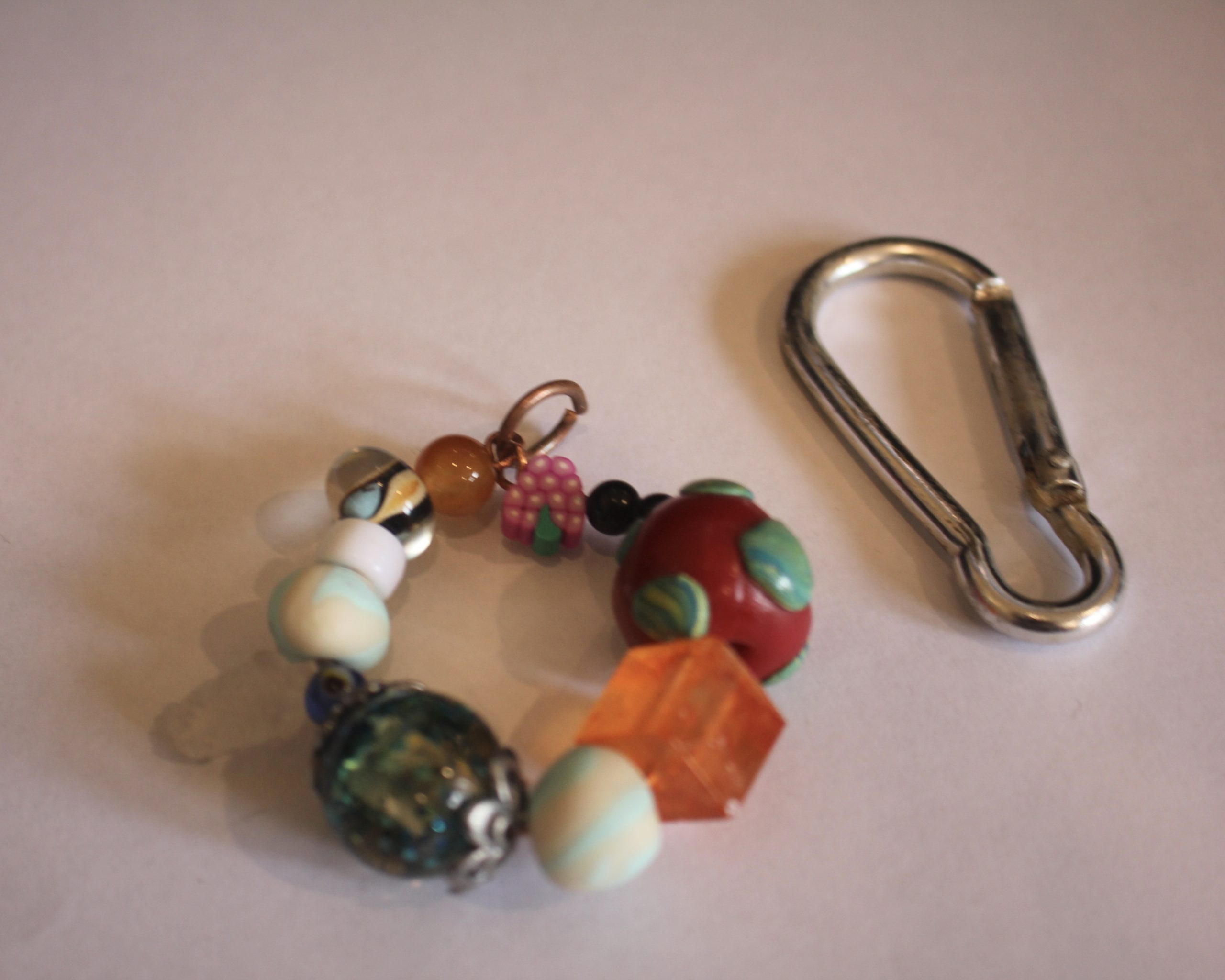 9: Slide the charms onto the carabiner to finish the bag charm off.