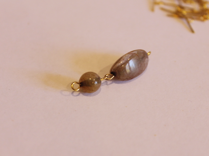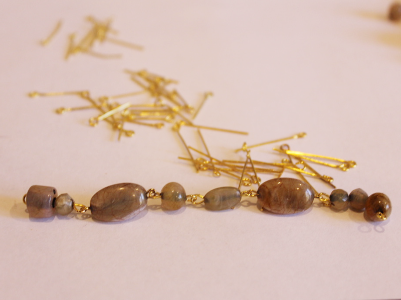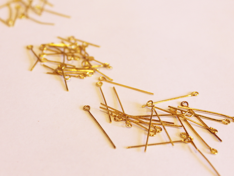 2: Loop the top of each pin using the round nose pliers. This will secure the beads on the pins.