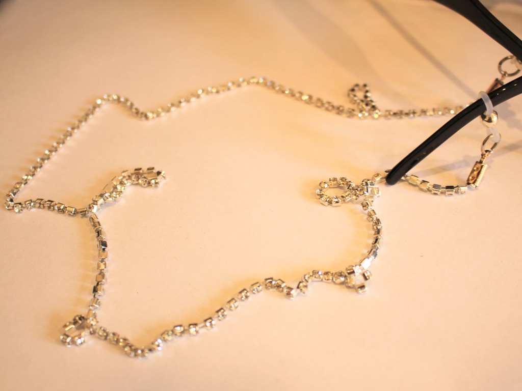 - Here’s a tutorial that shows you how to make a rhinestone glasses chain.
