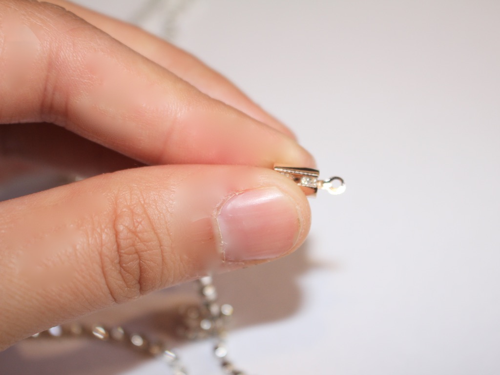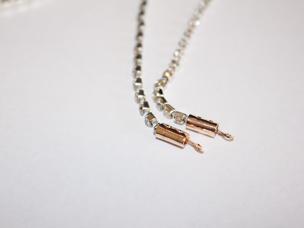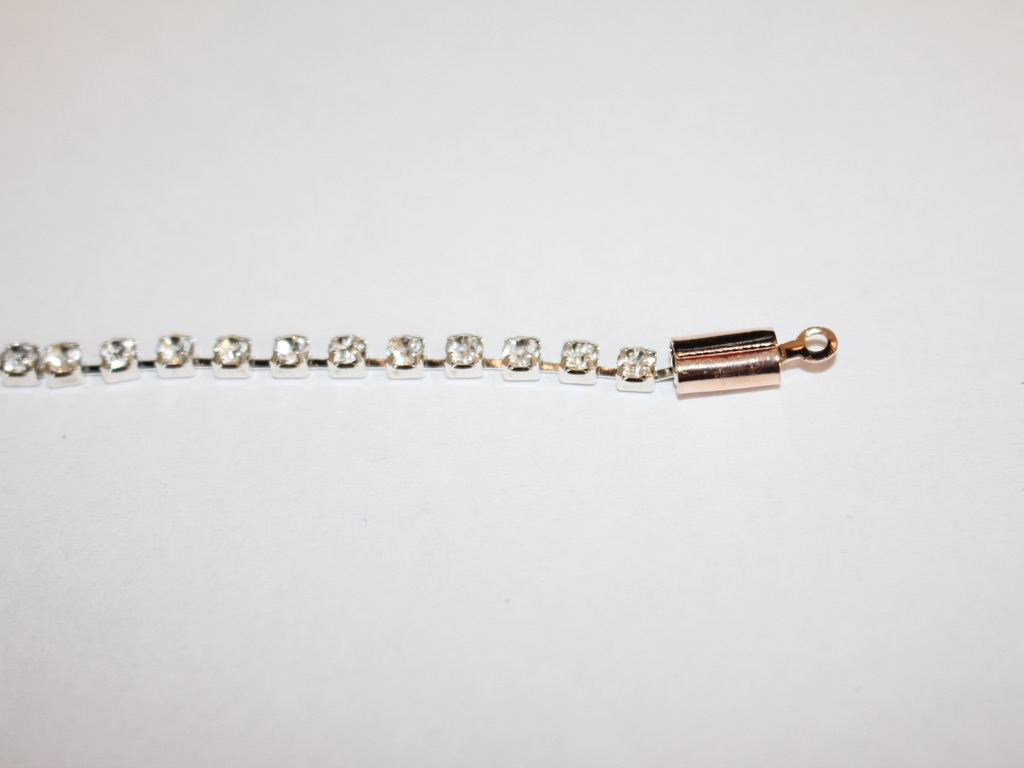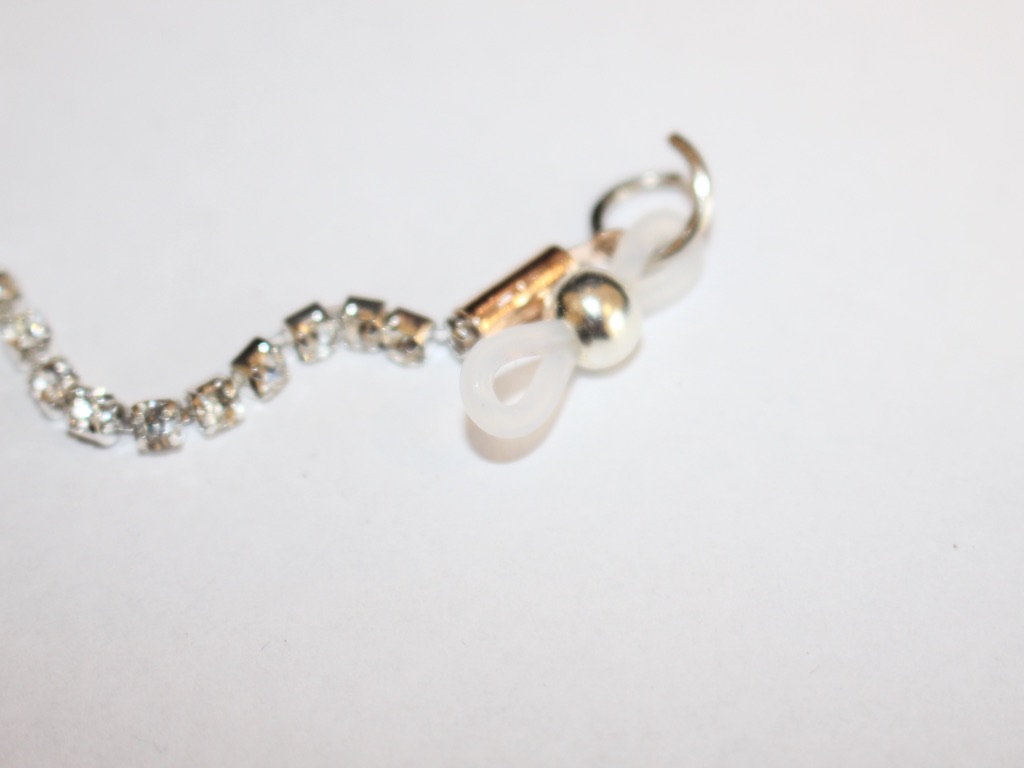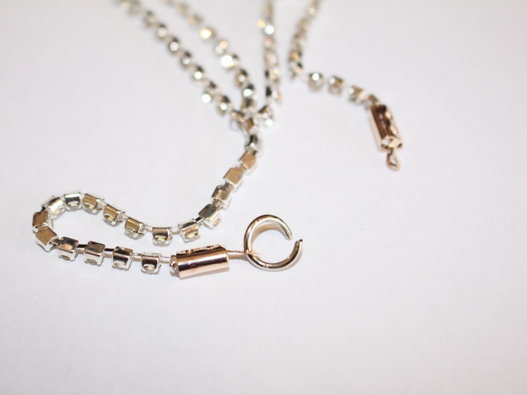 1: Take one end of the rhinestone chain and place it inside one of the crimp ends.