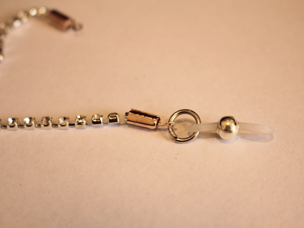 5: Add a jump ring to one end of the chain and use it to secure the rubber glasses holder in place. Repeat this for the other end of the chain to finish your DIY off.