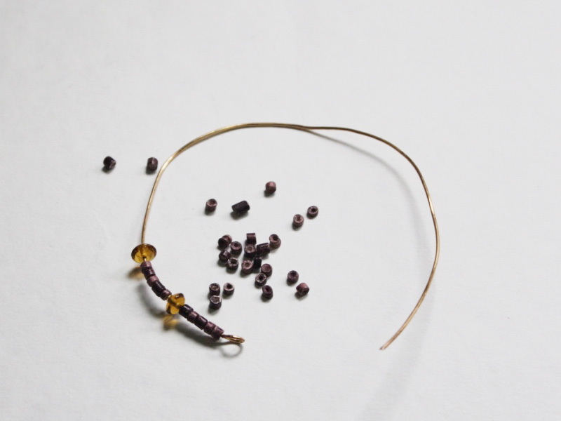 5: Once the beading is complete, use the round nose pliers and bend the end of the wire at a right angle to the beads.