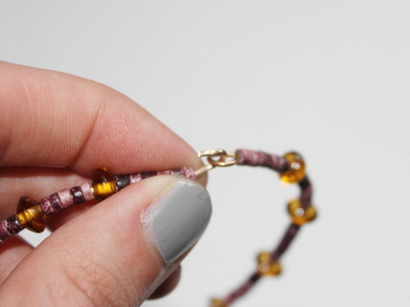 9: Now you’ve got a fully formed bangle! You can leave it here, but for this design I decided to add a couple of extra bead charms as well.