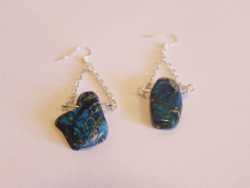These earrings are so cute! Made with some dyed jasper crystals, they are sure to make a summer statement.