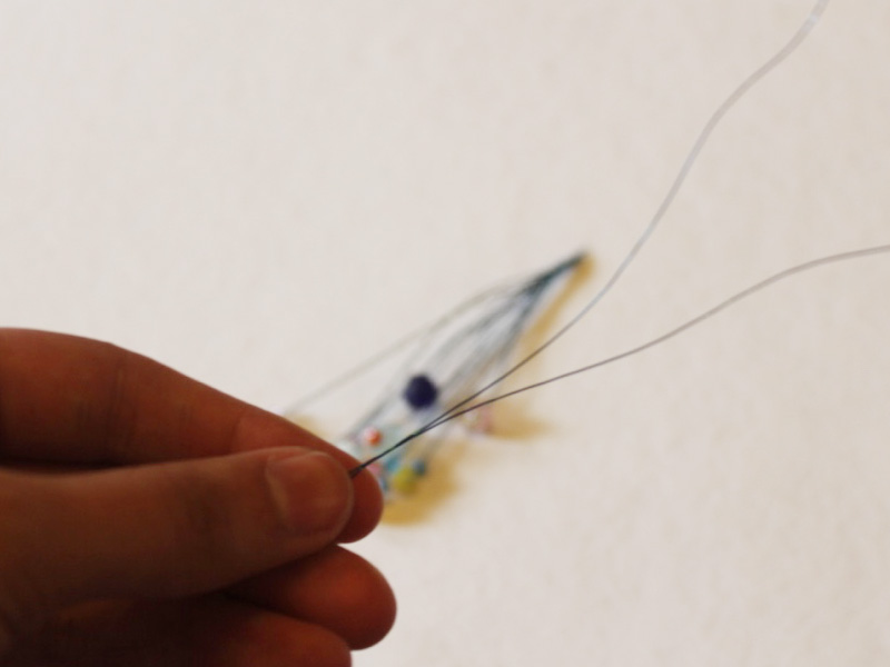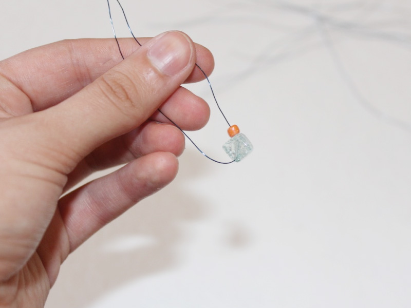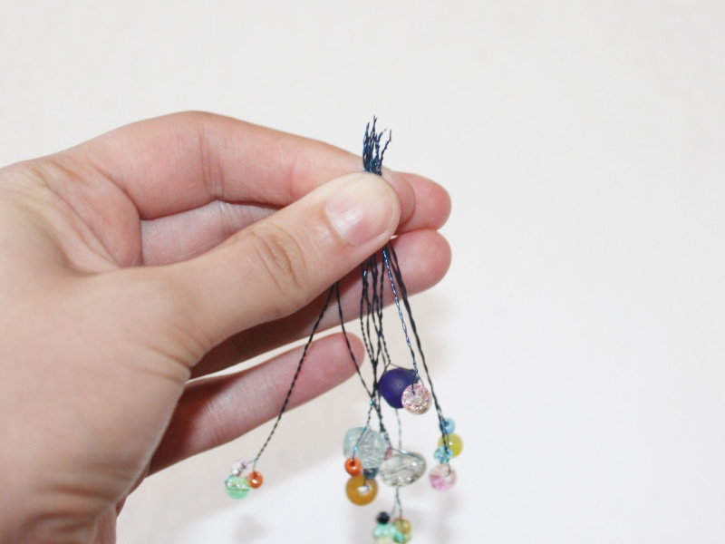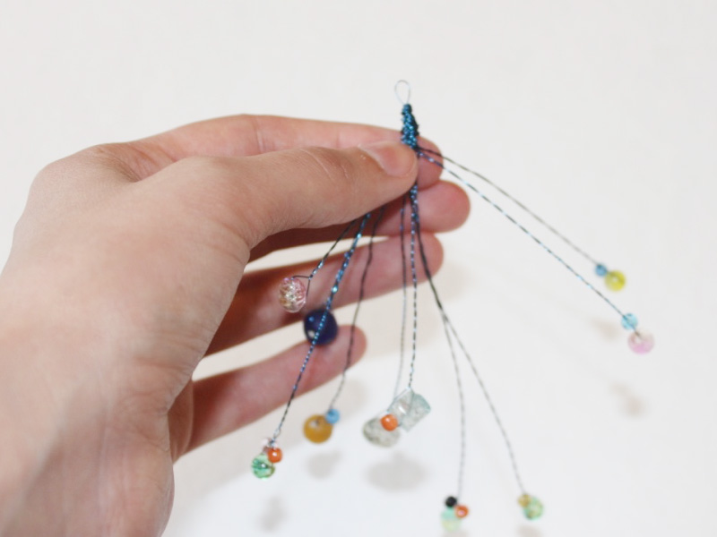 9: Once the pieces are secured at the top, gently pull and shape the bead wires into your preferred position to complete the pendant.