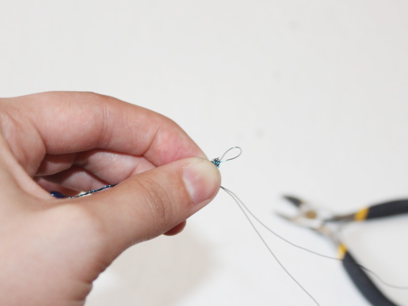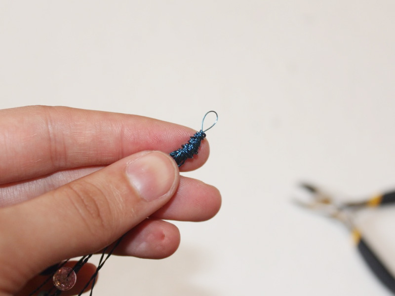 8: Place the loop at the top of the pendant and wrap the rest of the wire around the top to secure the bead bunch in place.