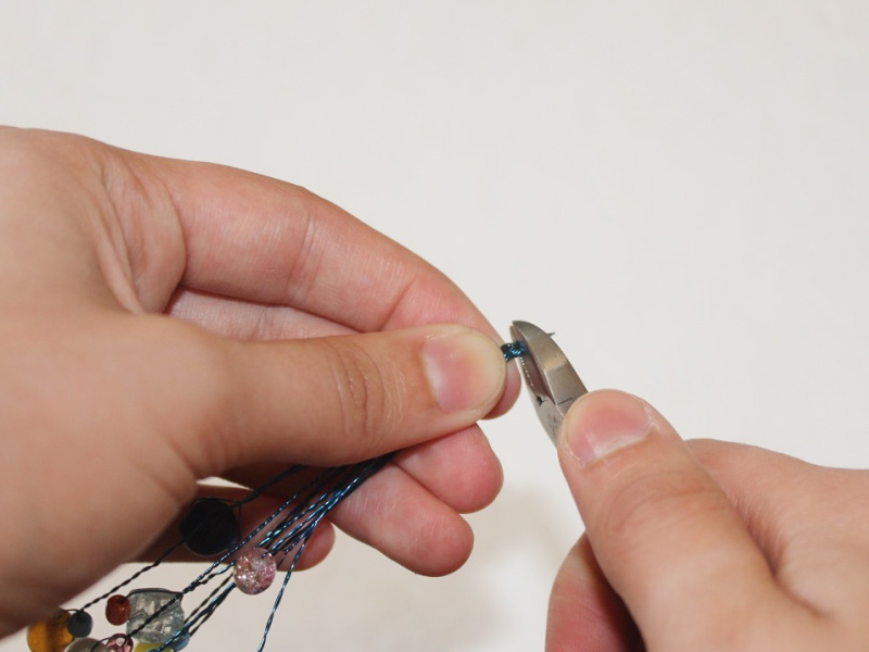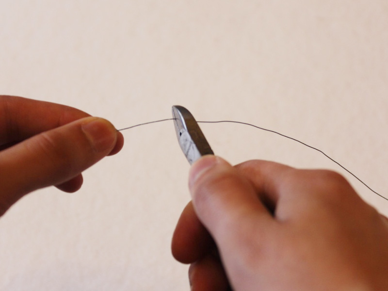 1: Cut the wire into different lengths using the cutting pliers. You can cut as many as you like. I cut eleven pieces of wire (one for finishing the top of the pendant).