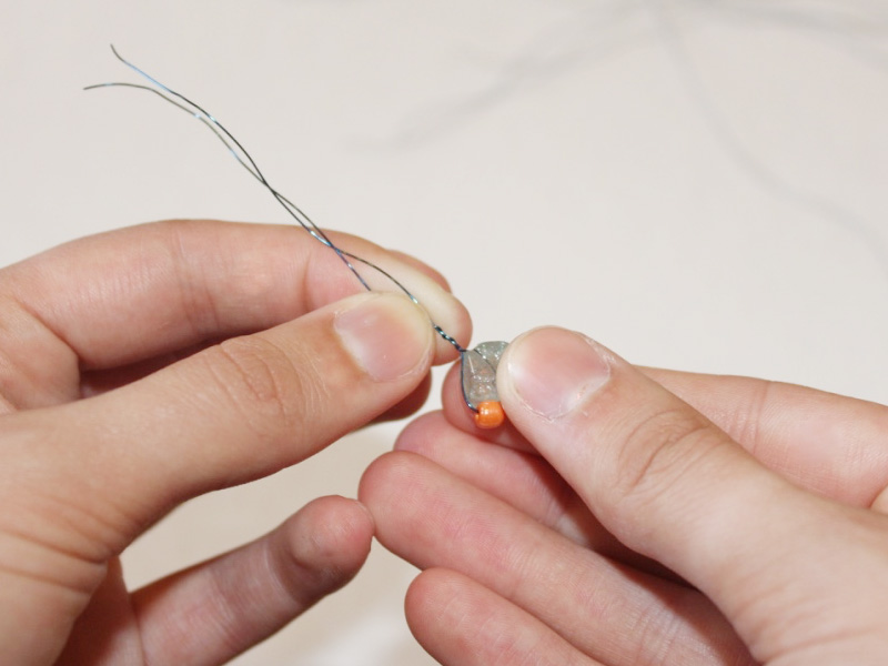 3: Twist the ends of the piece of wire together to hold the beads in place.
