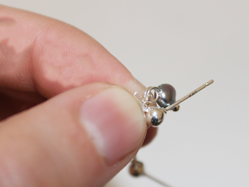 4: Add the earring to the other end of the pearl pin using the smaller jump ring.