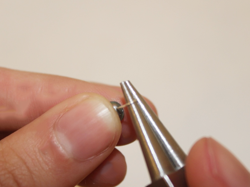 4: Bend each pin at a right angle to the beaded section using the round nose pliers.