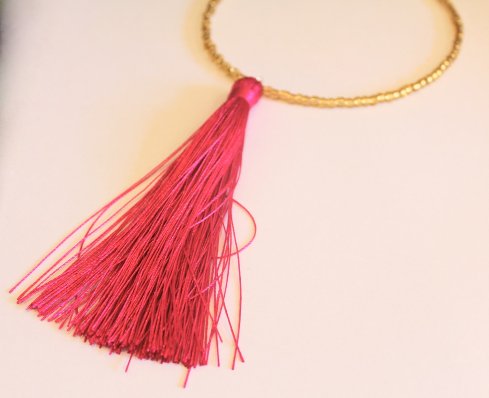 Here’s the finished product! Attach the tassel pendant to a chain for a simple and elegant look.
